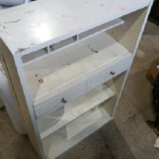 Mueble organizador blanco con estantes y cajones