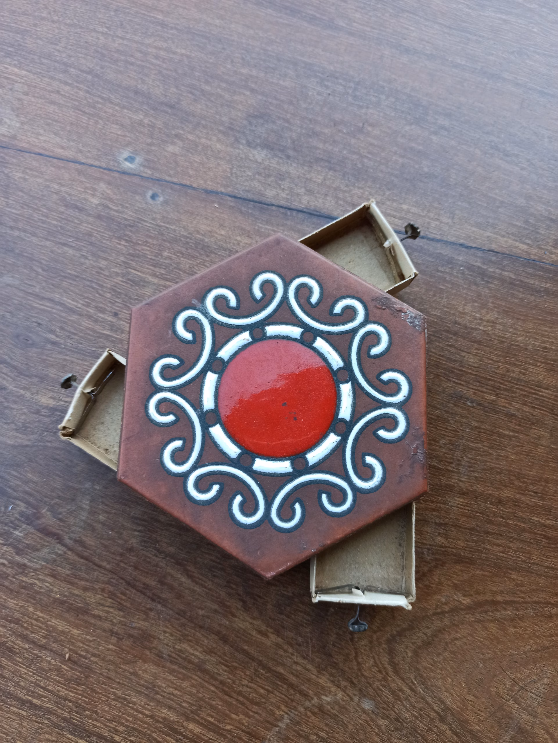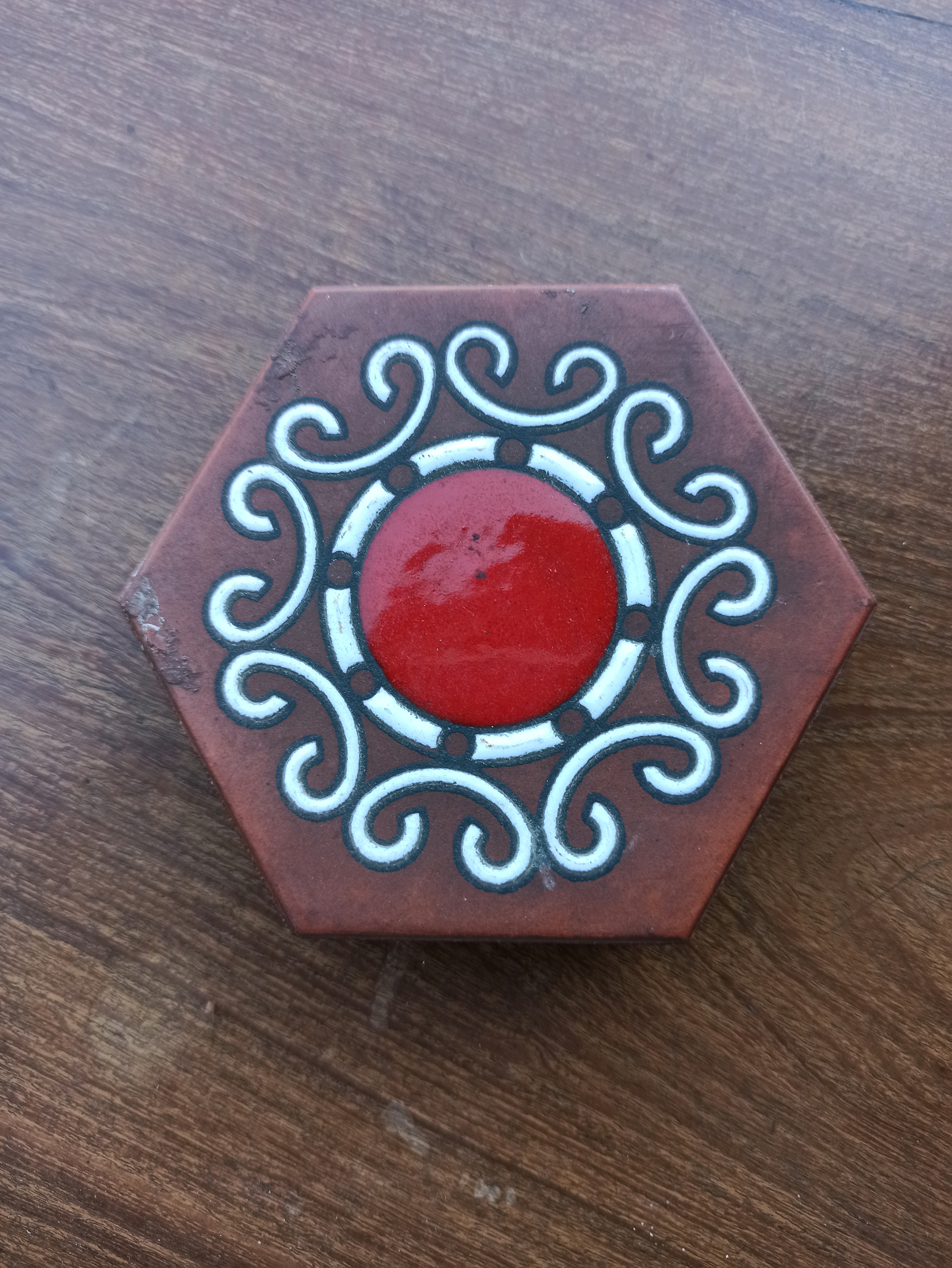 Esta encantadora cerámica contenedora de fósforos es perfecta para añadir un toque de estilo a tu hogar. Con su diseño hexagonal y detalles rojos, no solo es funcional, sino que también se convierte en una pieza decorativa. Ideal para tener siempre a mano tus fósforos en la mesa de café o en la cocina, este objeto evoca la tradición artesanal argentina. Su historia se remonta a la rica cultura de la cerámica, donde cada pieza es única, aportando un carácter especial a tu espacio.