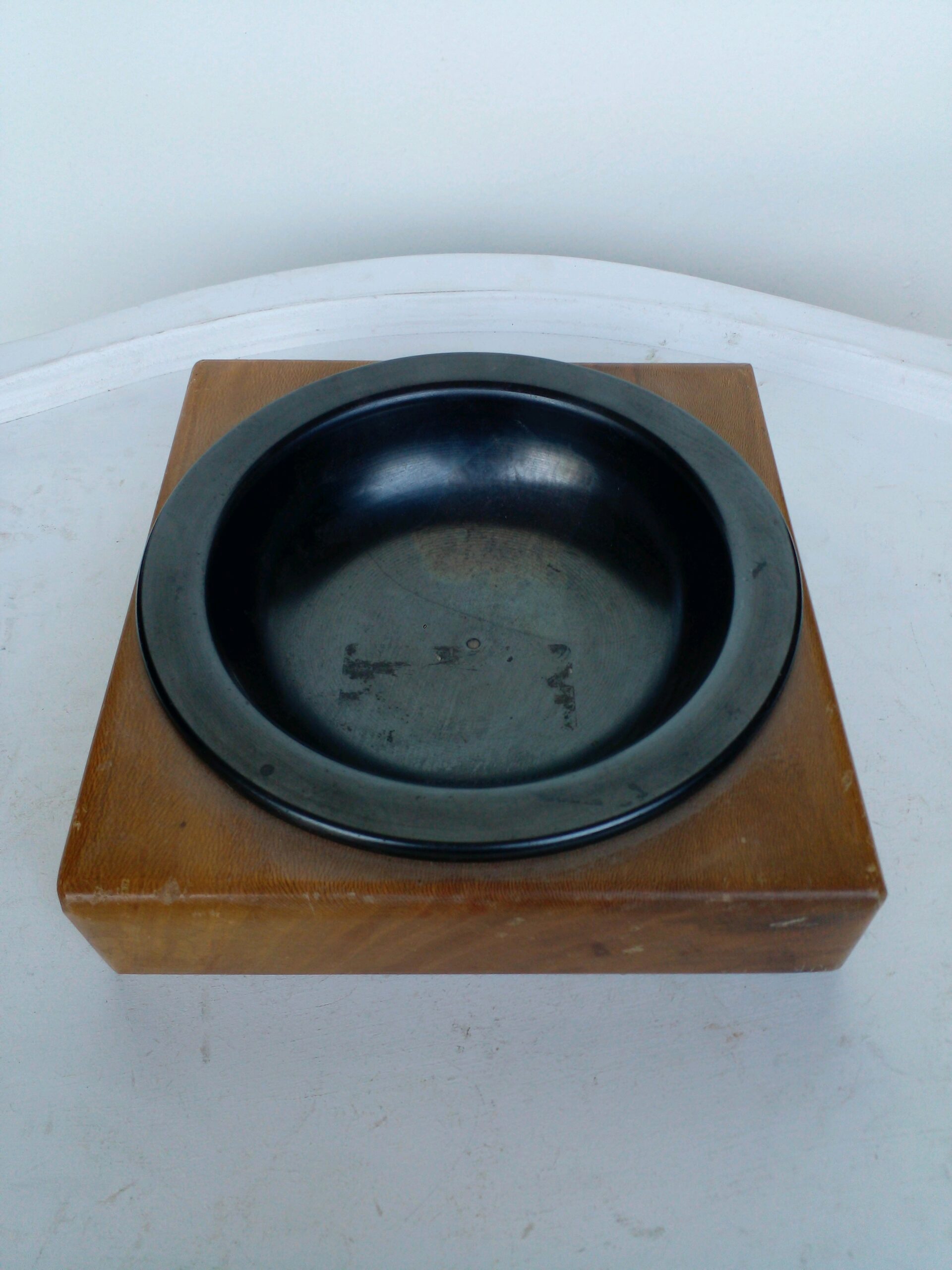 Cuenco metalico con base de madera