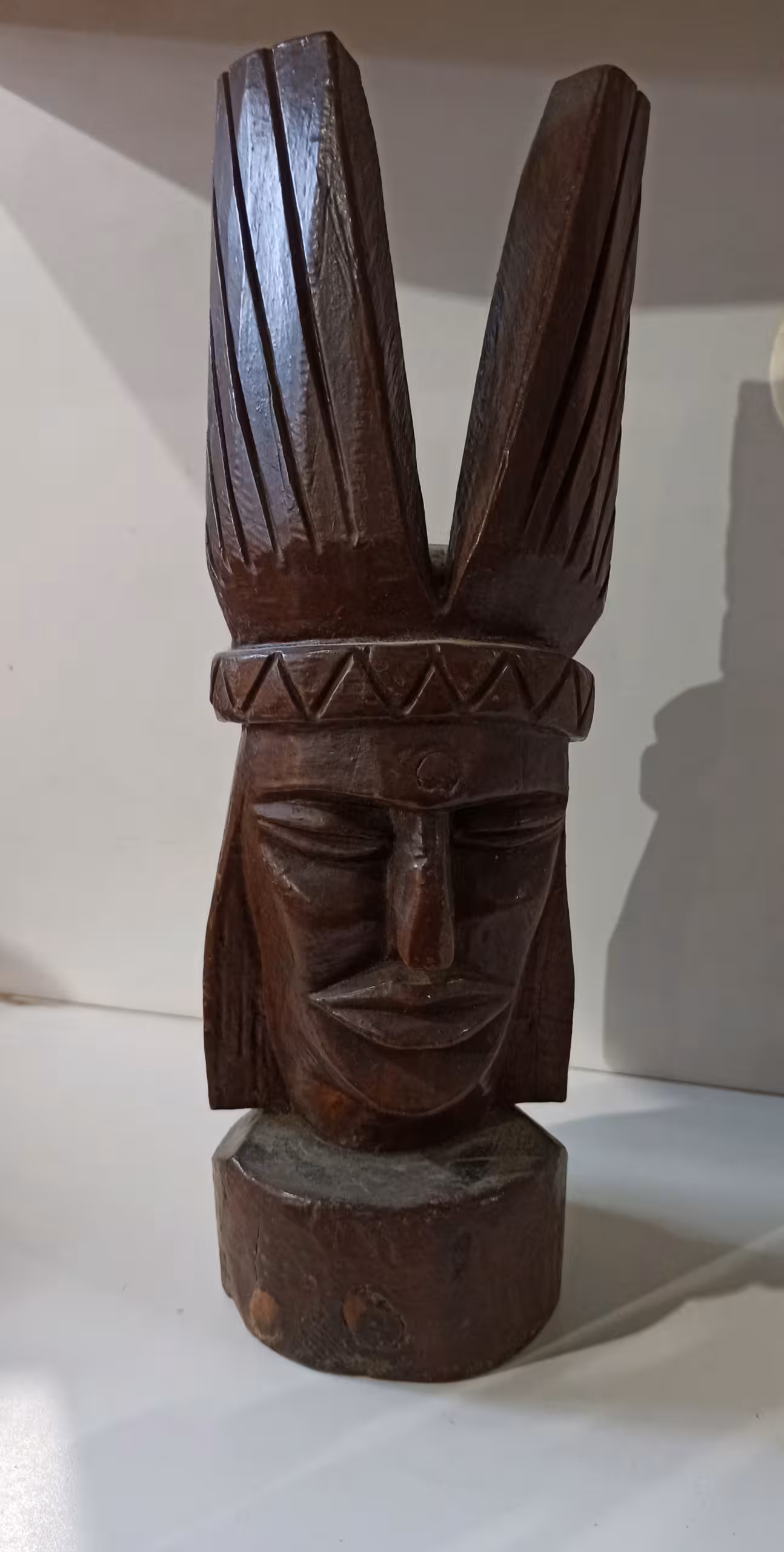 Escultura de madera maciza rostro de indígena